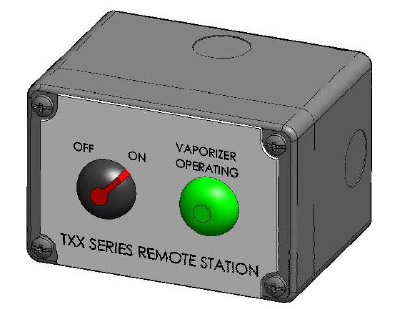 Remote Start/Stop Box – Includes remote start/stop capability and a status light indicating the vaporizer is ready for operation (solenoid valve open). IP65 (NEMA 4) enclosure